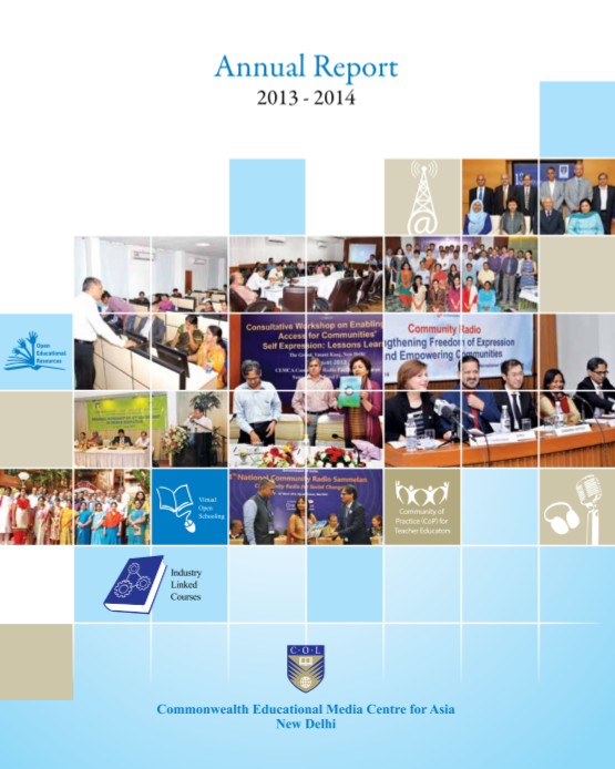 In 2013-14, COL-CEMCA worked on various initiatives to promote open educational resources (OER) and capacity building. COL-CEMCA organised workshops on e-content development, ICT-integrated teacher education, and virtual open schooling. COL-CEMCA also collaborated with institutions like National Institute of Open Schooling (NIOS) to develop online courses and resources. Some notable projects include the Virtual Open Schooling (VOS) platform, Communities of Practice (CoP) for teacher educators, and certification courses in sound recording and design.