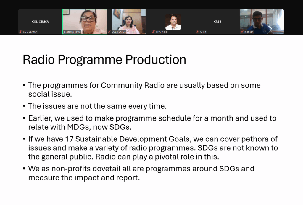 In a significant initiative to strengthen grassroots media, the Commonwealth Educational Media Centre for Asia (COL-CEMCA), in collaboration with the Community Radio Association of India, hosted a national webinar on content creation, curation, and report writing for community radio stations (CRS). The virtual session brought together practitioners from across the country to share knowledge, explore challenges, and learn practical skills critical to the success and sustainability of community radio.